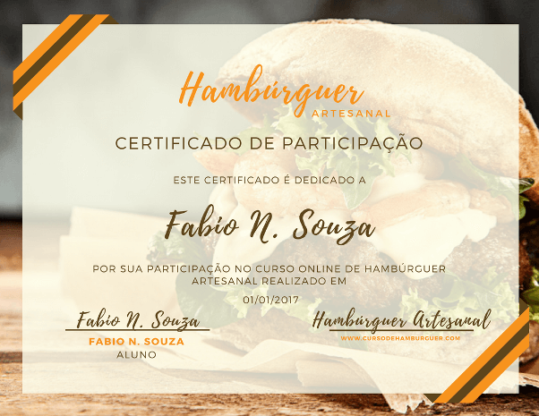 Após finalizar todas as aulas do curso você vai ter acesso a um certificado de conclusão atestando a sua capacitação na produção de Hambúrguer Artesanal.