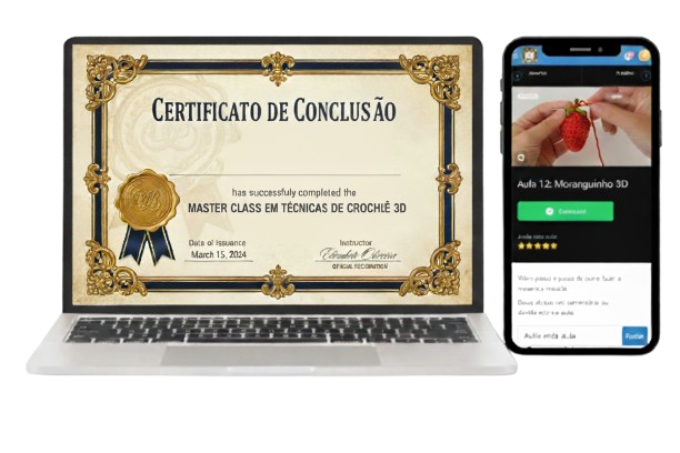 Você receberá o seu certificado exclusivo, de conclusão do Curso de Mini Frutinhas e Crochê 3D