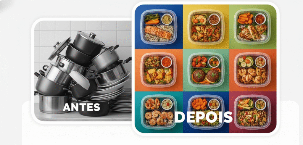 Cansada de comer sempre o mesmo e gastar demais, ela criou um método simples para planejar e preparar marmitas da semana em poucas horas.