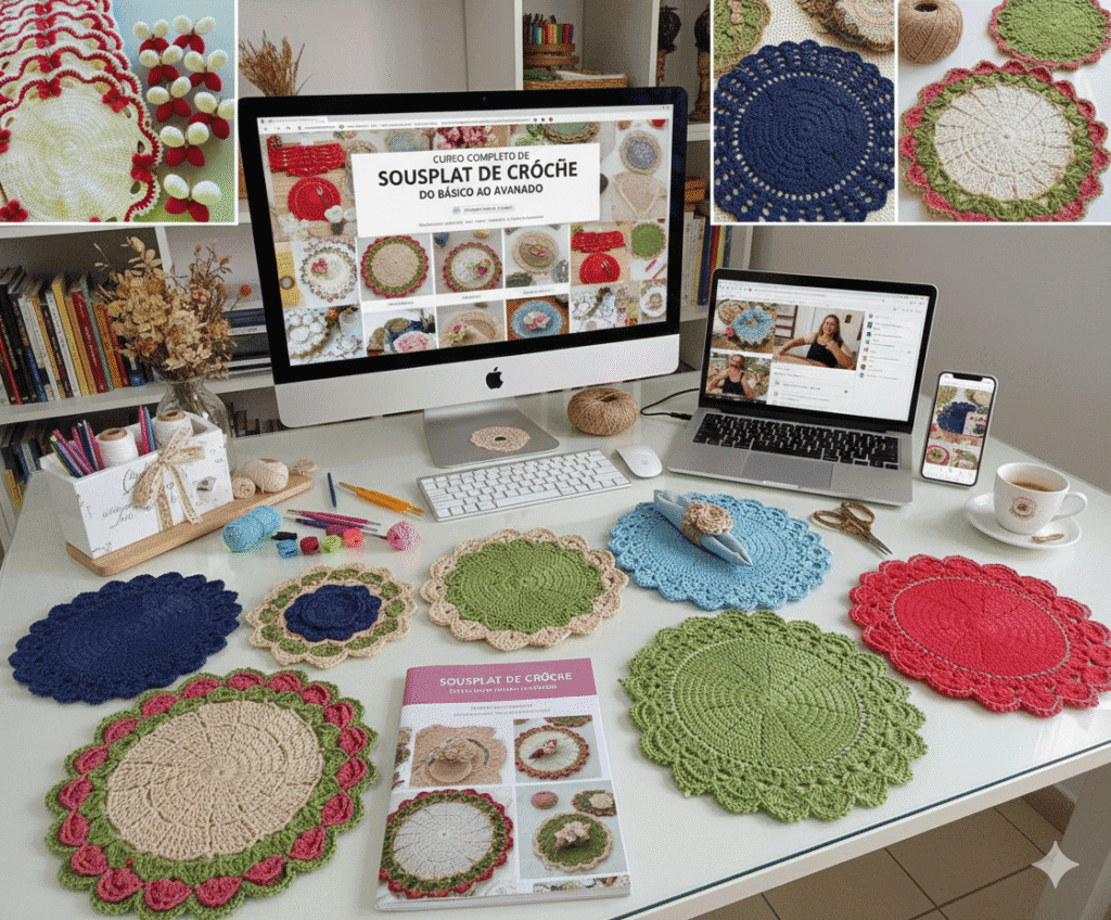 Imagine aprender a criar mais de 50 modelos de sousplat exclusivos… e transformar cada peça em obras de Arte:
