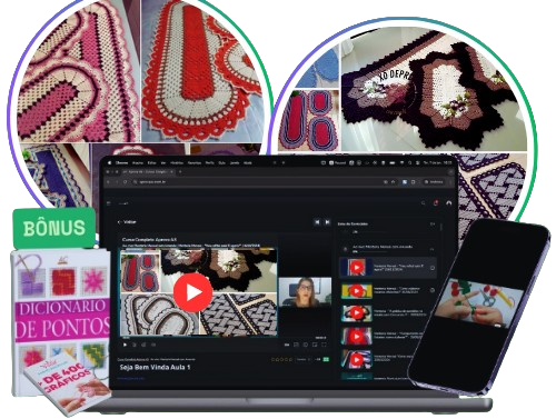 O único curso do Brasil que ensina passo a passo mais de 35 modelos de Tapete americano, para aumentar sua renda, presentear e aprender novas peças tendência de crochê.